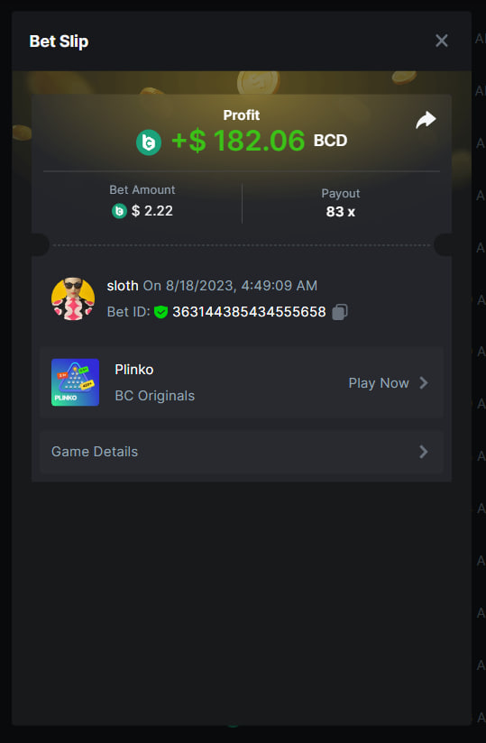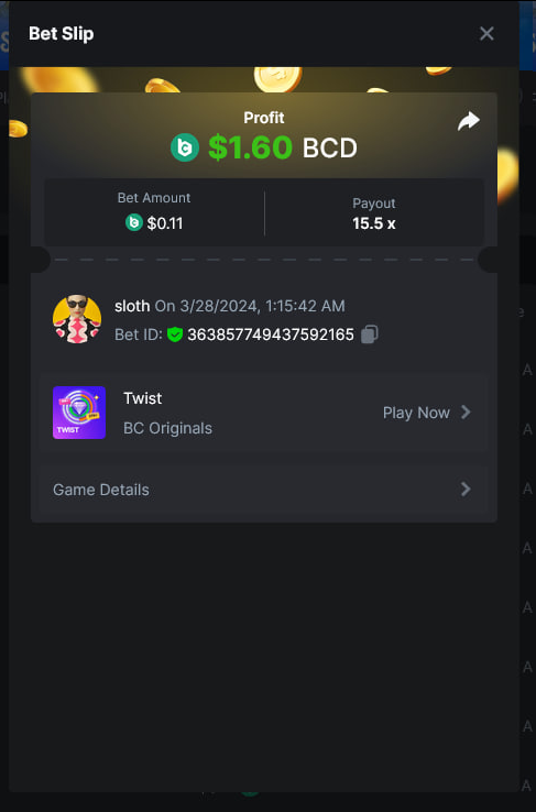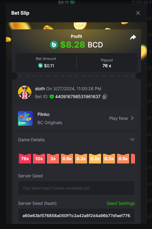 Total Points 30/30 EASY 1 https://bc.game/#/sd/11VO77GATVCCXF 2 https://bc.game/#/sd/11VO36FOYPH48V 3 https://bc.game/#/sd/11VKFQKFWOAMU7 4 https://bc.game/#/sd/11VKM1H288HRNB 5 https://bc.game/#/sd/11VKG5J0NO13JB 6 https://bc.game/#/sd/11VKLQZGL749P7 7 bet id 2388541117525266478 8 https://bc.game/#/sd/11VKH3DCZZR72Z 9 https://bc.game/#/sd/11VKHRDODKPPY3 10 Both done. MEDIUM 1 https://bc.game/#/sd/11VKEFPNPAVZIZ 2 https://bc.game/#/sd/11VKDDJO482EBN 3 https://bc.game/#/sd/11VKE9CI6RTUE7 4 bet id 2388491552407298304 5 https://bc.game/#/sd/11VJN7D9T73JFR 6 https://bc.game/#/sd/11VKERZ2NQWVER 7 * There is a problem with blackjack bet slips. all of the bets in history shows as 0 value in bet slip.blackjack hand is visible at bet slip game info ss .i also added ss of bill showing the bet with game id. bet is 2 bcd. Thank you https://bc.game/#/sd/11VOQRXMFX4X27 8 https://bc.game/#/sd/11VLQJAKYSW9P7 9 https://bc.game/#/sd/11VLS5NLHTDLWB 10 https://bc.game/#/sd/11VLWDXNBYDIRB HARD 1 https://bc.game/#/sd/11VJO4ADTOF1NJ 2 https://bc.game/#/sd/11VMPUDVWNOGCN 3 https://bc.game/#/sd/11VMKBWDTF65NF 4 https://bc.game/#/sd/11VOIUG63W4GGV 5 https://bc.game/#/sd/11VO9PCVEW7R4B 6 https://bc.game/#/sd/11VOO6VJNW78Y3 7 https://bc.game/#/sd/11VMKUB6AK9HJ7 8 https://bc.game/#/sd/11VODUXB33W0GV 9 https://bc.game/#/sd/11VOH4GG3LZ55Z 10 bet id 2385379590152524000