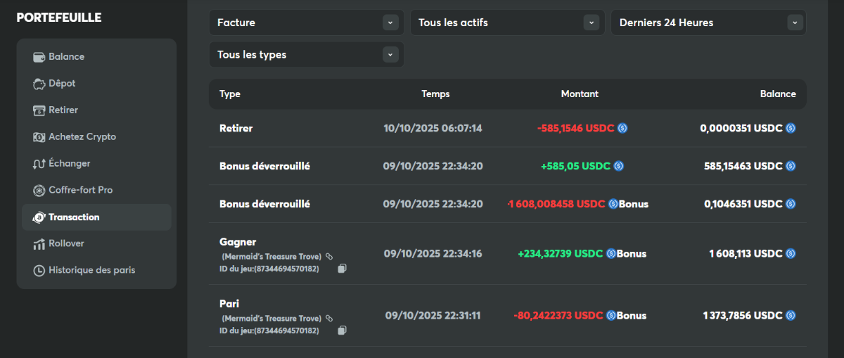 Hi everyone, a ~100% bonus was applied automatically on a $100 deposit without a clear opt-out. My balance peaked around $1,600, then dropped to $585.05 at “unlock”/cashout. To qualify for the bonus unlock, I had to wager over $7,000 in total, which made it very unlikely to keep a balance close to the peak.