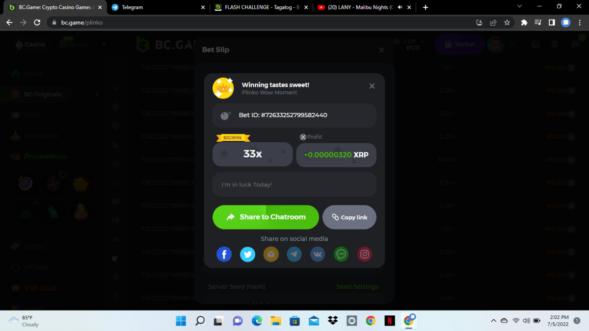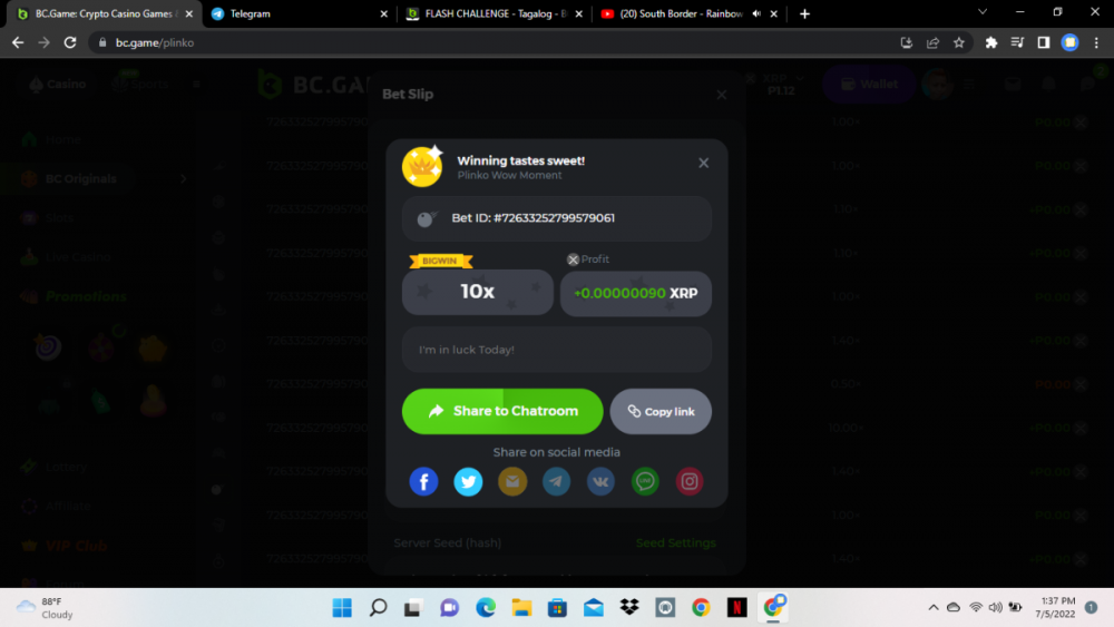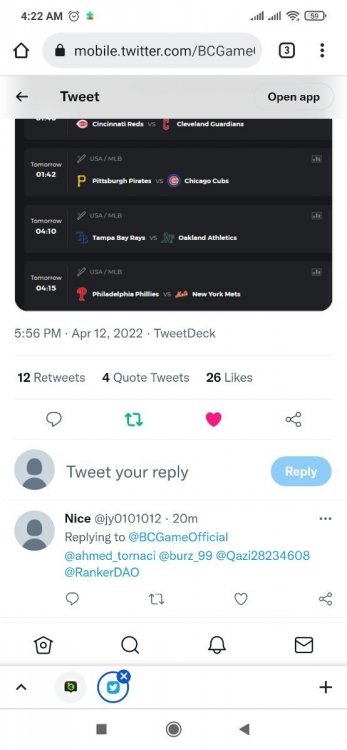 Easy 1. IG username: jy0101012 2.IG post link: https://www.instagram.com/p/CcQ15iihtEh/ IG username: jy0101012 3.Twitter Handle: jy0101012 4.Twitter Link post: https://twitter.com/BCGameOfficial/status/1513818244859457537?s=20&t=k-Gx9ZNEpjCFZIQLuoWYbQ Twitter Handle: jy0101012 5.FB profile link: https://m.facebook.com/john.yan.16121?lst=100042354130320%3A100042354130320%3A1649794589 6. 7. Sports Bet id: 2125322774074499456 8. 9. 10. Enable 2FA Medium 1. 2. 3. 4. 5. Sports Bet id: 2126036089507557603 Hard 1.Wheel 49.5 https://bc.game/sd/?sd=10ILDC7GCTCAOJ