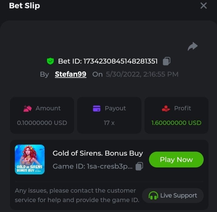 Tried again today and this time another 10$ spent lol Gold of sirens https://bc.game/sd/?sd=10LL55T37X2CYB Elven Princesses https://bc.game/sd/?sd=10LL5WZHSMB4LV -May 26, @ 11$ spent hunting 10x multi- bust my 6$ here never reached 10x Tried another $5 today still no luck Gl players!