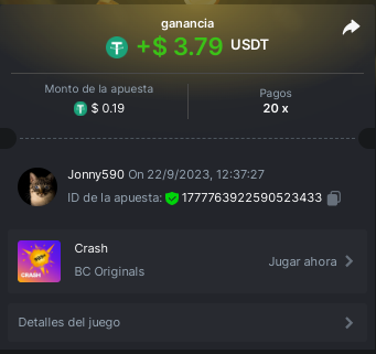 4. https://bc.game/#/sd/11INTM34DYRMDJ I bet 0.2 USDT, the page says it as 0.19