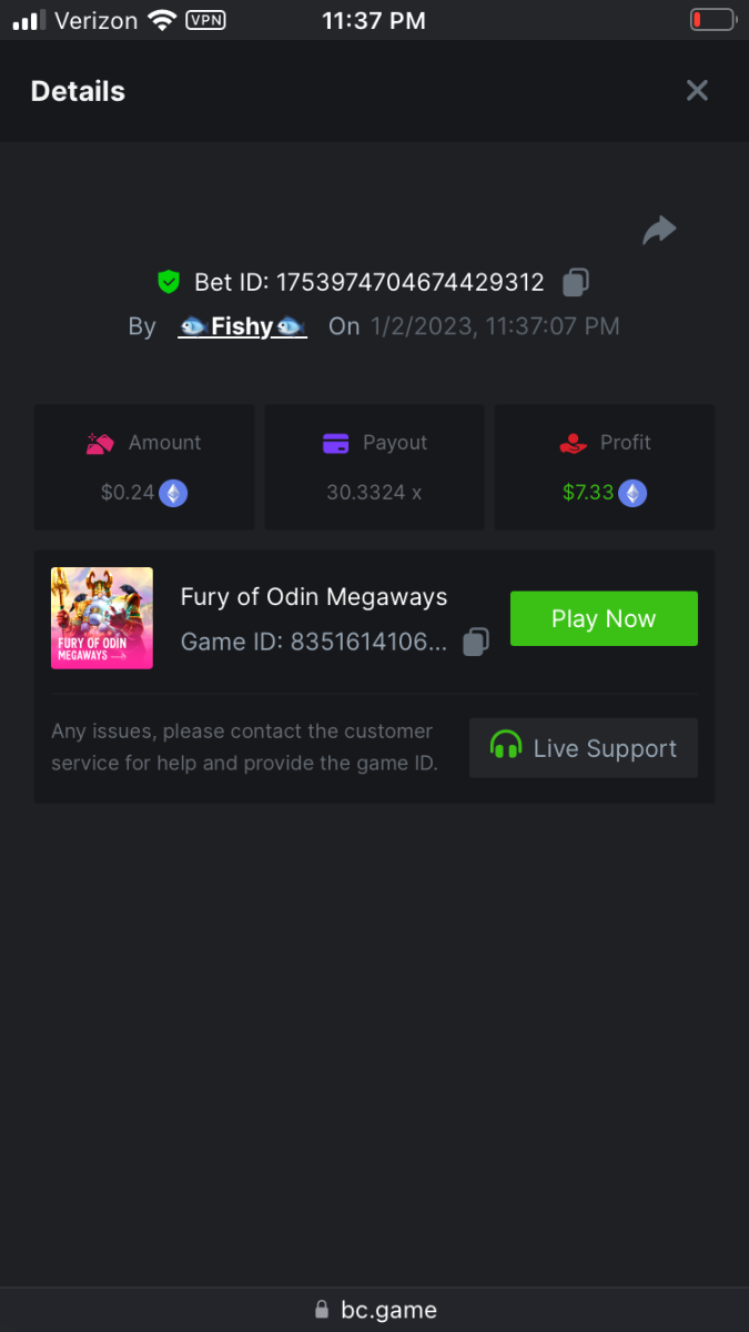 2. Voodoo: 62.5x Bet ID: 1746713862637473543 Hell Hot 100: 18.8x Bet ID: 1746712591668479104 100 zombies: 16x Bet ID: 1746714484686114567 Dia de Los muertos: 160x Bet ID: 1746903881181296391 Cyber Wolf: 100x BET iD: 1746904418254801024 The Vampires: 18.39x BET ID : 1746905035575187463 Hell Hit 20: 40x BET ID: 1746906362450280455