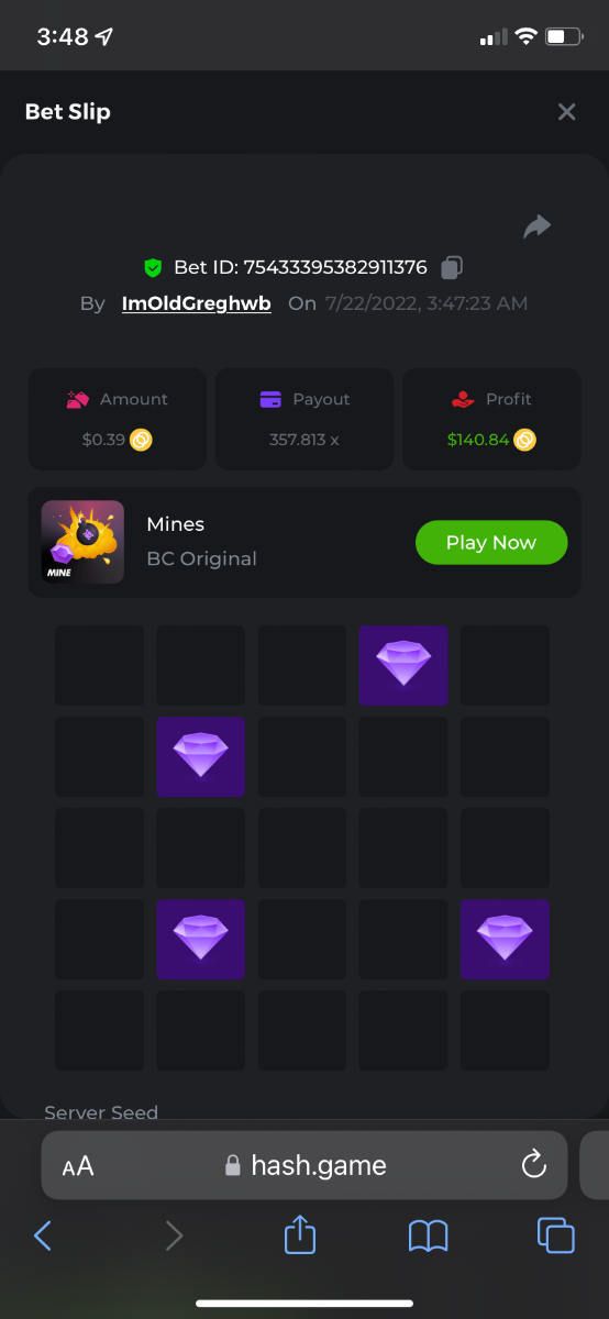 3. https://hash.game/sd/?sd=10P5KHI4OGAX3N like damn it I didn’t have 15 cents to bet with can I get an honorable mention