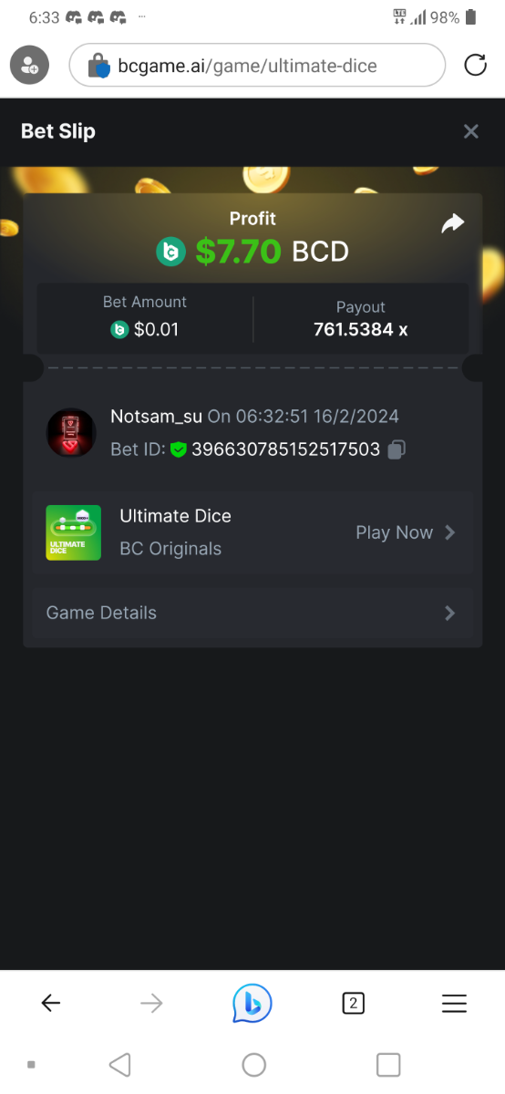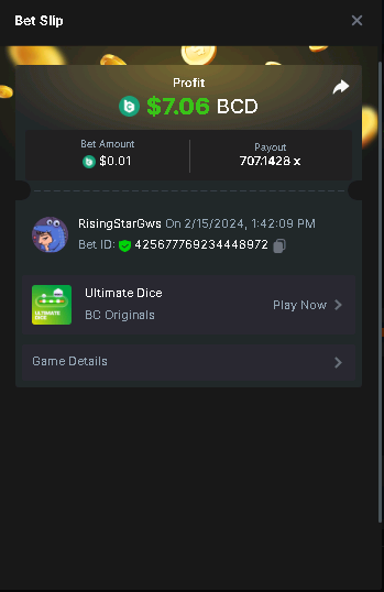 Moderator Giandreas Posted February 15, 2024 Moderator Share Posted February 15, 2024 Read Carefully Before Start To Hunt Forum Daily Challenges #511Hunt : Ultimate Dice Win the highest pay out Min Payout : x20 Min Level 10️Duration Starting : Now End time : 23.59 UTC Time How to Join? Make screenshot + paste your bet link + UID or Profile link Any coin, with min bet 0.01 USD is allowed (jb/bb/bcl not allowed)Reward Prizes 1st Place.....$7 BCD 2nd Place.....$5 BCD 3rd Place.....$4 BCD 4th Place.....$3 BCD 5th Place.....$2 BCD 🏵 Winners will be announcing next day after Roll Point! Link to comment Share on other sites More sharing options...