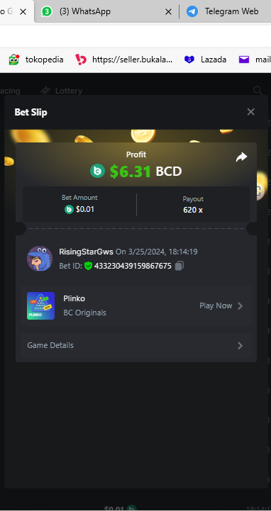 Moderator Giandreas Posted March 25, 2024 Moderator Share Posted March 25, 2024 Read Carefully Before Start To Hunt Forum Daily Challenges #550Hunt : Plinko Win the highest pay out Min Payout : 130x Min Level 10️Duration Starting : Now End time : 23.59 UTC Time How to Join? Make screenshot + paste your bet link + UID or Profile link Any coin, with min bet 0.01 USD is allowed (jb/bb/bcl not allowed)Reward Prizes 1st Place.....$7 BCD 2nd Place.....$5 BCD 3rd Place.....$4 BCD 4th Place.....$3 BCD 5th Place.....$2 BCD 🏵 Winners will be announcing next day after Roll Point! Link to comment Share on other sites More sharing options...
