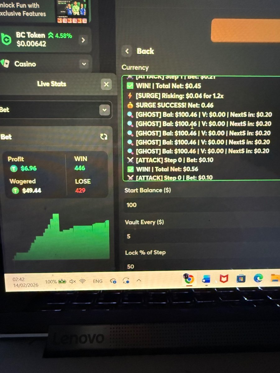 ystudio3d Posted February 14 Share Posted February 14 Hi everyone, I’ve been refining a new system for a while now, and I wanted to share the results. I call it the Analytical Vault (V11.0). Unlike basic scripts that just follow a fixed pattern, I designed this one with a "brain" that constantly re-calculates its own safety net. It operates across different mental states: GHOST mode for low-risk observation, ATTACK mode for calculated strikes, and a SURGE mode that compounds profits only when the session is going well. The most important part is the Vault mechanism. Every time the system hits a profit milestone, it automatically "locks" a portion of those winnings. It essentially moves the money to a safe area where the script can't touch it, while simultaneously tightening the Stop Loss to protect what’s already been earned. It’s built for players who are tired of winning and then losing it all in one bad streak. It’s about securing the green as you go. I’m looking to share this with a small group of serious, high-tier players. If you understand how a risk-management system like this works and you’re interested, reach out Link to comment Share on other sites More sharing options...
